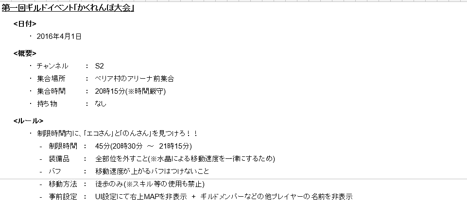 第一回ギルドイベントとして「かくれんぼ大会」を開催しました!!