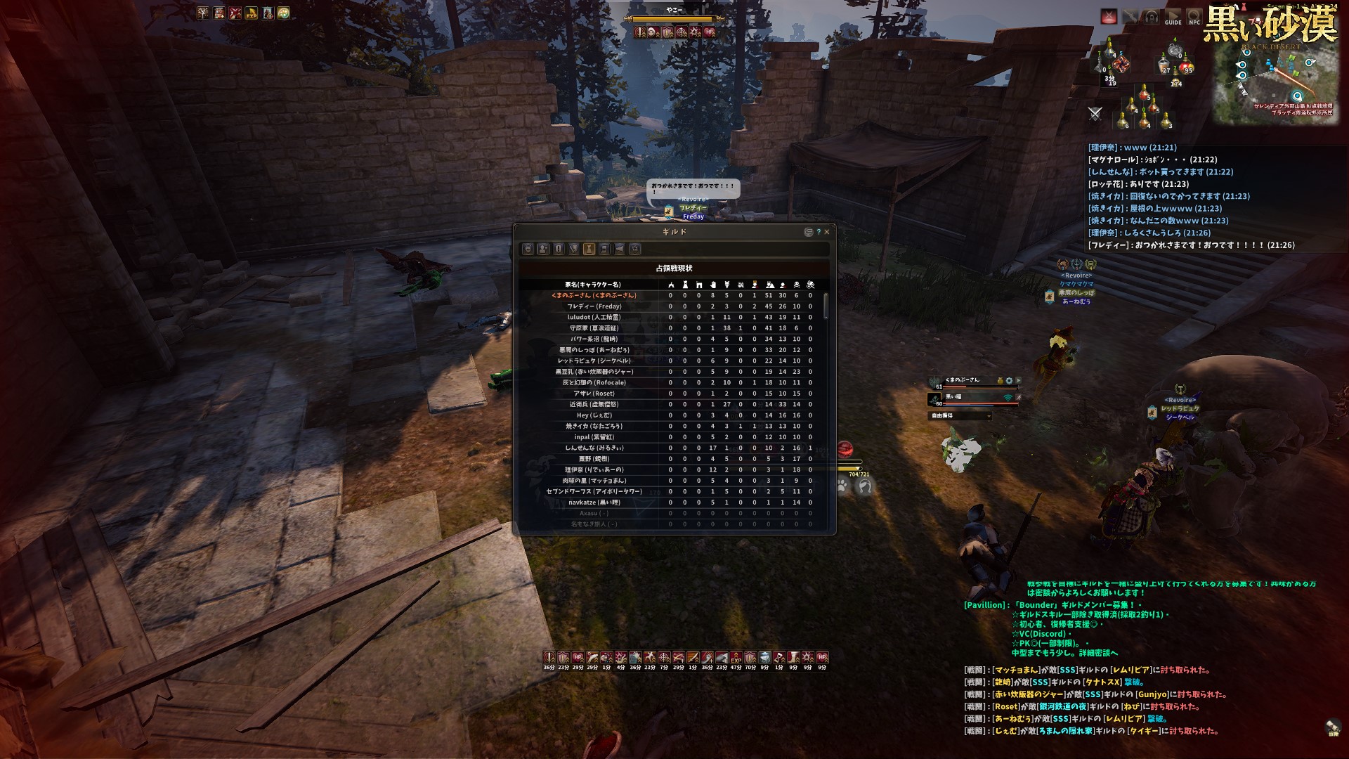 全体の戦局を確認する余力もなかったので、直接戦ったギルドだけ記載します@w@