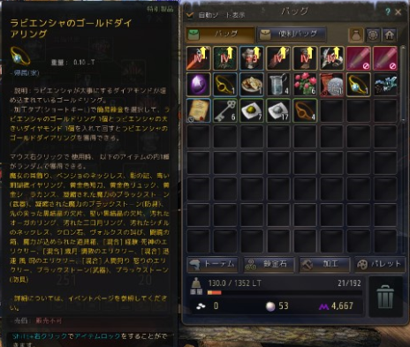 ゴールドダイヤリングを開けてしまってからイベント詳細見ましたが、個人的には「煌くラビエンシャのボックス」と「ラビエンシャのゴールドダイヤリング」をひたすら作って開封していくのがいい気がしました。